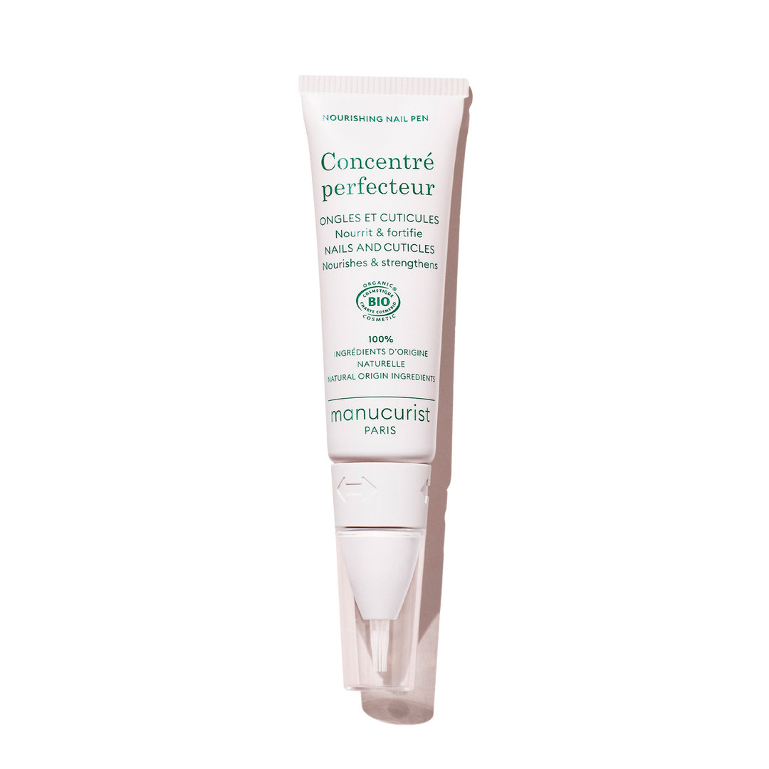 The Nourishing Nail Pen strengthens nails and cuticles with castor oil, vitamin E, and pistachio extract. Its concentrated formula rehydrates and softens, while the brush-tip pen allows easy, precise application—perfect for quick, on-the-go care.