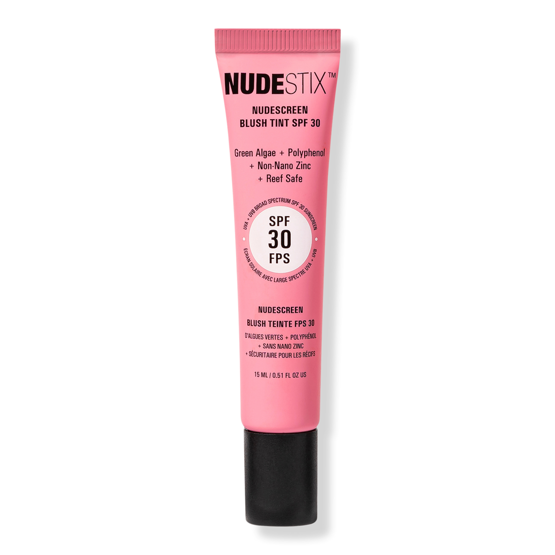 NUDESTIX Nudescreen Blush Tint SPF 30 multi-tasks as a clean, naturally tinted liquid blush color for cheeks, lips and eyes that is lightweight and hydrating