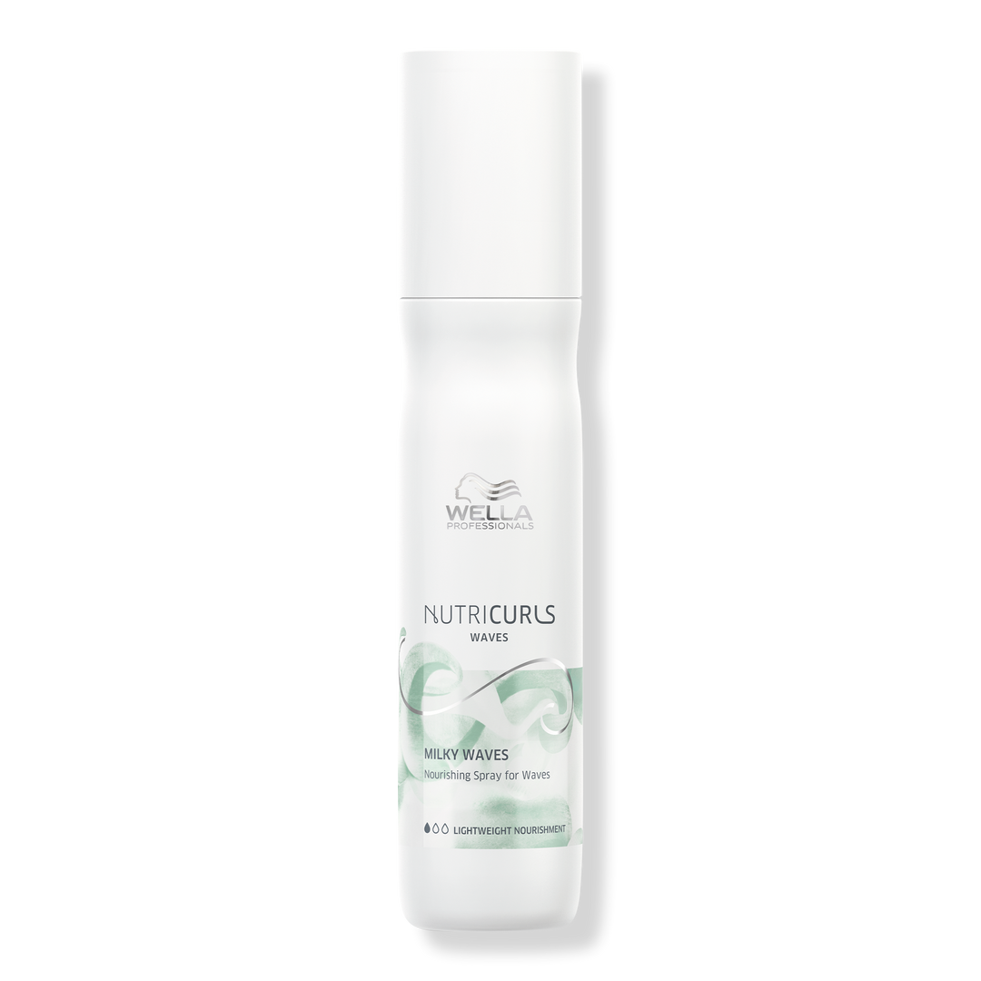 The Wella Professionals NUTRICURLS Milky Waves Nourishing Spray is a lightweight milky leave-in spray that nourishes and adds manageability for soft waves.