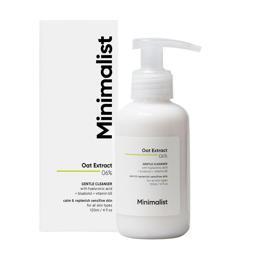 Minimalist Oat Extract 6% Gentle Cleanser for Sensitive, Dry & Dehydrated Skin Hyaluronic Acid Provides Hydration For Women & Men 4 Fl Oz 120 ml