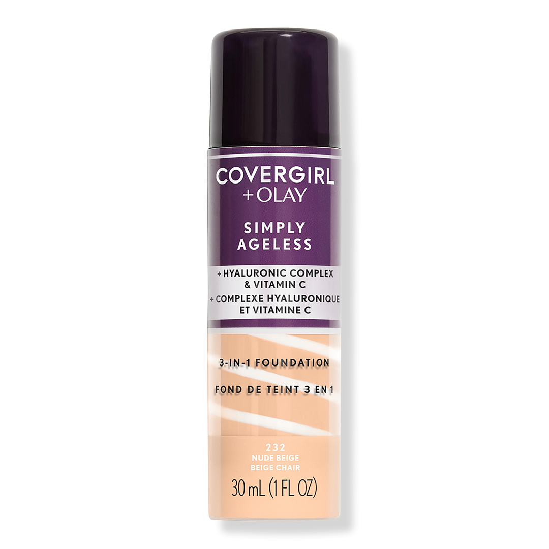 Give your skin a youthful glow with COVERGIRL + Olay Simply Ageless 3-in-1 Liquid Foundation. This anti-aging foundation plumps up skin to instantly reduce the appearance of wrinkles for a radiant complexion. Hyaluronic complex & vitamin C deliver firming hydration to keep your skin looking healthy.