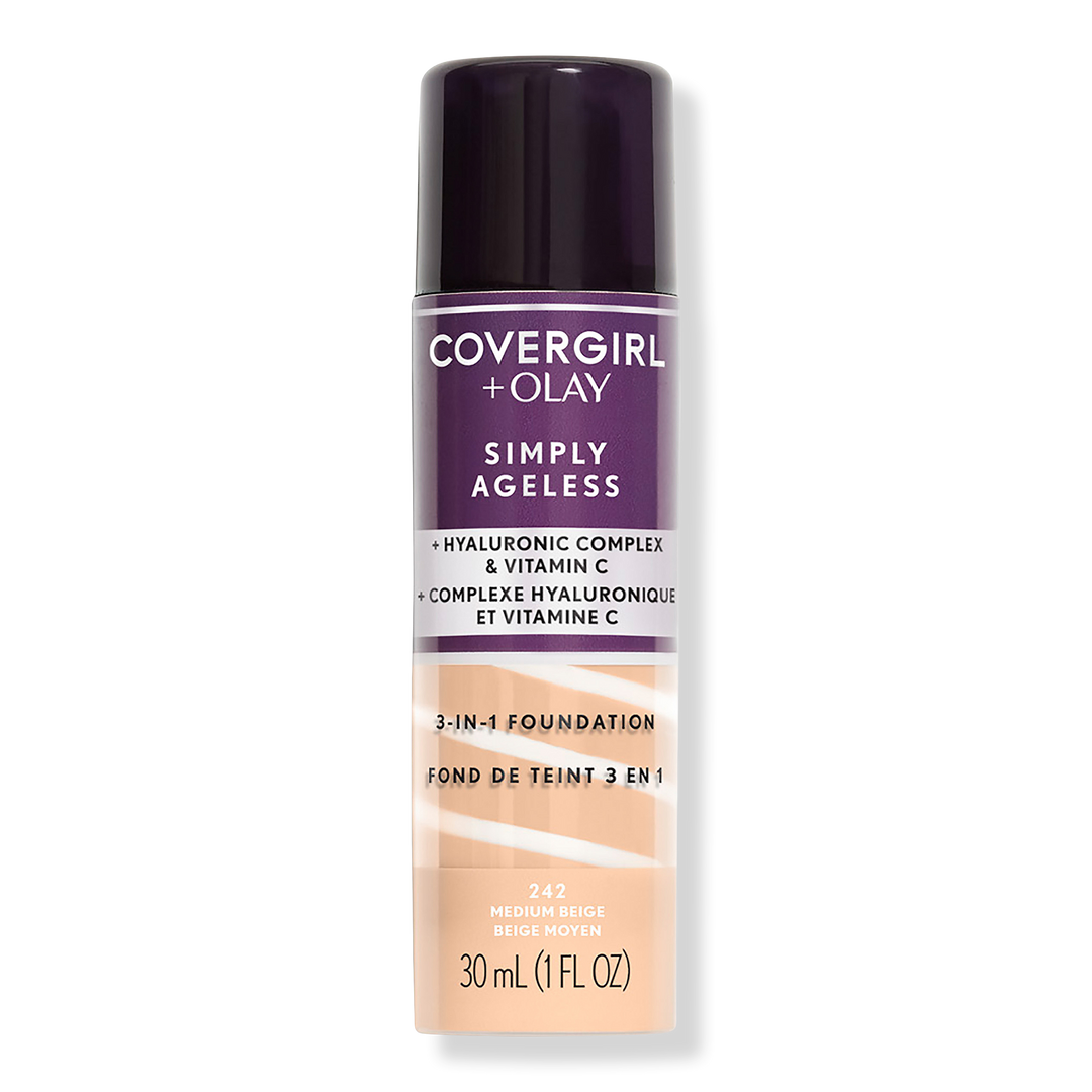 Give your skin a youthful glow with COVERGIRL + Olay Simply Ageless 3-in-1 Liquid Foundation. This anti-aging foundation plumps up skin to instantly reduce the appearance of wrinkles for a radiant complexion. Hyaluronic complex & vitamin C deliver firming hydration to keep your skin looking healthy.