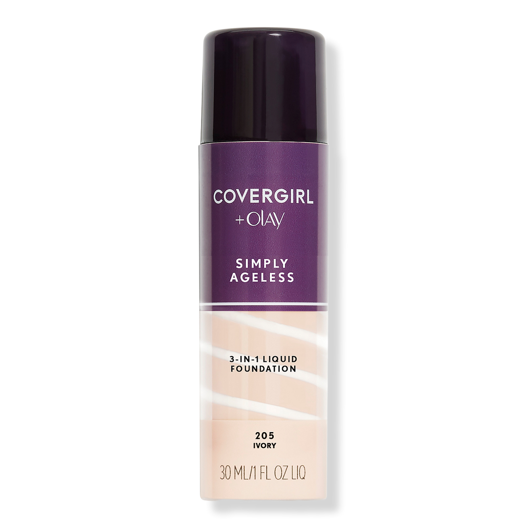 Give your skin a youthful glow with COVERGIRL + Olay Simply Ageless 3-in-1 Liquid Foundation. This anti-aging foundation plumps up skin to instantly reduce the appearance of wrinkles for a radiant complexion. Hyaluronic complex & vitamin C deliver firming hydration to keep your skin looking healthy.