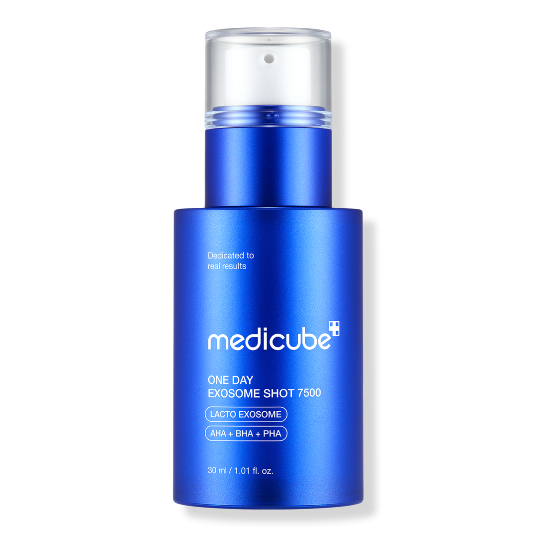 Medicube's One Day Exosome Shot 7500 is an intensive pore-minimizing ampoule powered by 7,500 ppm Exosomes for visibly smaller pores, smoother texture, and stronger skin resilience.