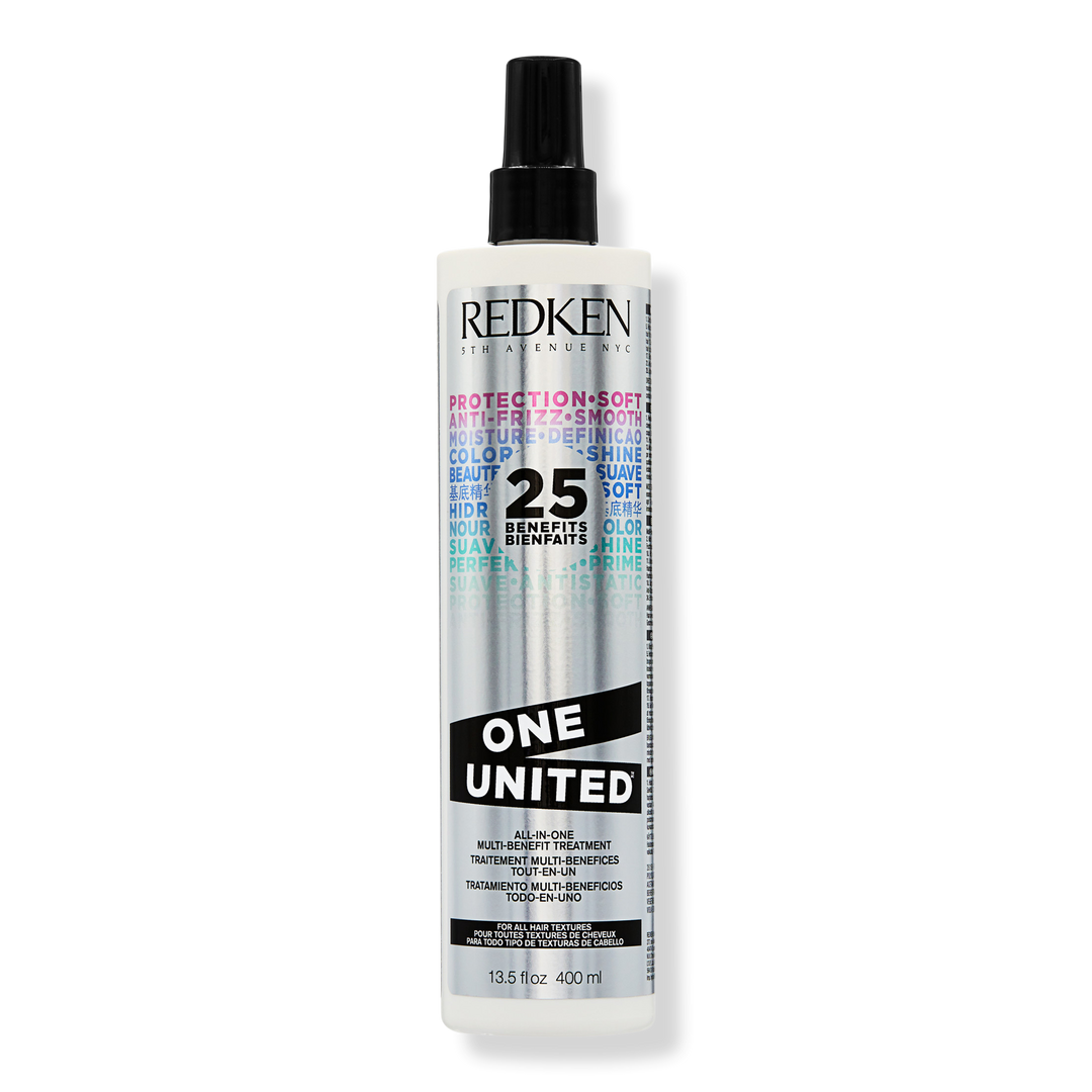 Redken One United is an anti-frizz leave-in conditioner, detangler, and heat protectant that nourishes and supports hair repair. It also prevents split ends, seals in hair cuticle, and primes hair for styling. This vegan formula is best for all hair type, including damaged or color-treated hair.