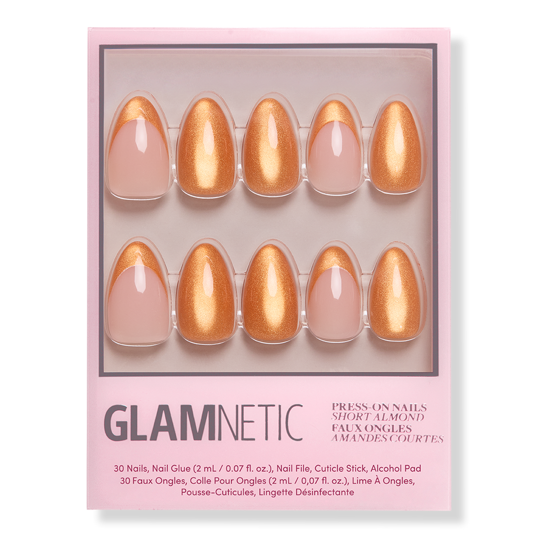 Catch golden hour at your fingertips. Glamnetic’s Orange Pop Press-On Nail Set features sun-soaked orange nails with a high-shimmer, glossy velvet finish that mimics sunrays. Designed in a short almond shape, this salon-quality set delivers a vibrant, long-lasting mani in just 10 minutes.
