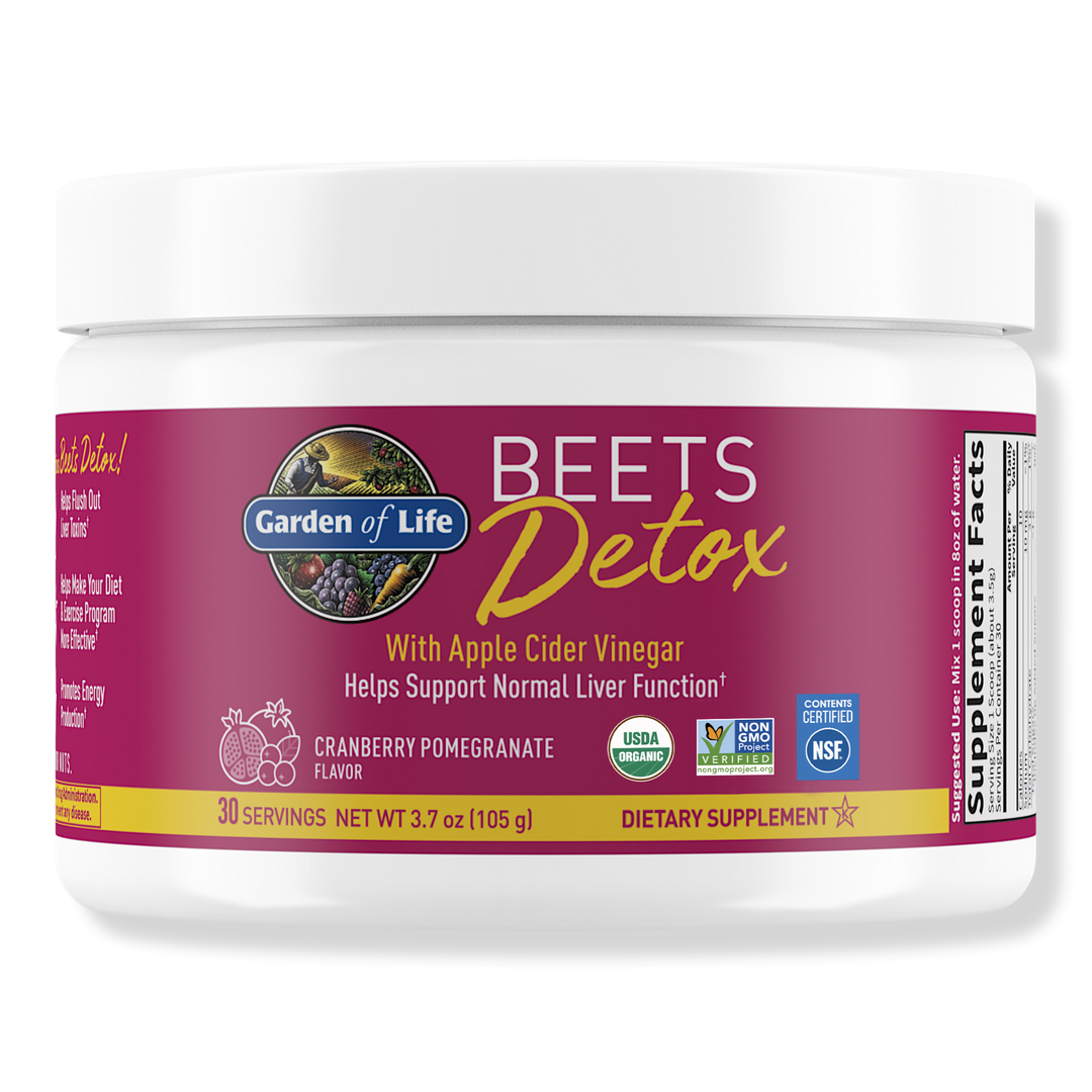 Garden of Life Organic Beets Detox Cranberry Pomegranate Powder, formulated with key ingredients that support the body’s own natural detoxification systems.