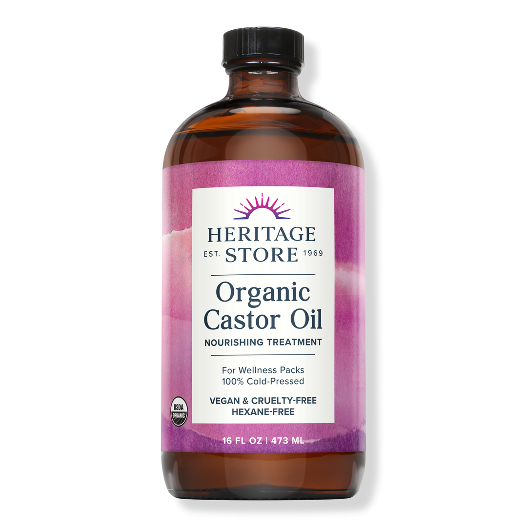 Heritage Store Organic Castor Oil for Castor Packs, Hair, Skin, Lashes & Brows.