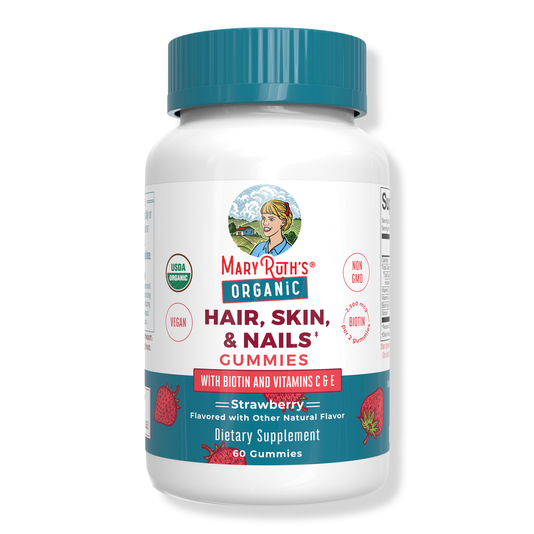 MaryRuth's Organic Hair Skin & Nails Gummies Strawberry are delicious strawberry-flavored gummies that were formulated to support the health of your hair, skin, and nails! With three important vitamins in one gummy: vitamins C, E, and biotin.
