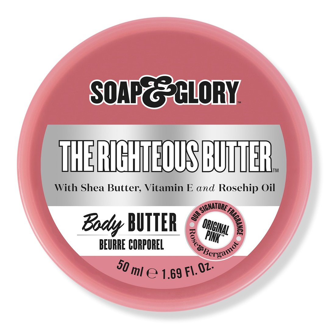 Soap & Glory Original Pink The Righteous Butter Moisturizing Body Butter is award-winning body butter that smooths, nourishes and hydrates. It's formulated with shea butter, aloe vera, vitamin E and rosehip seed oil to quench dry skin.