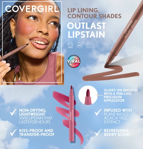 Covergirl's iconic Outlast Lipstain is back! Non-drying, lightweight buildable lip stain that stays put, doesn't feel tight and feels fresh all day.