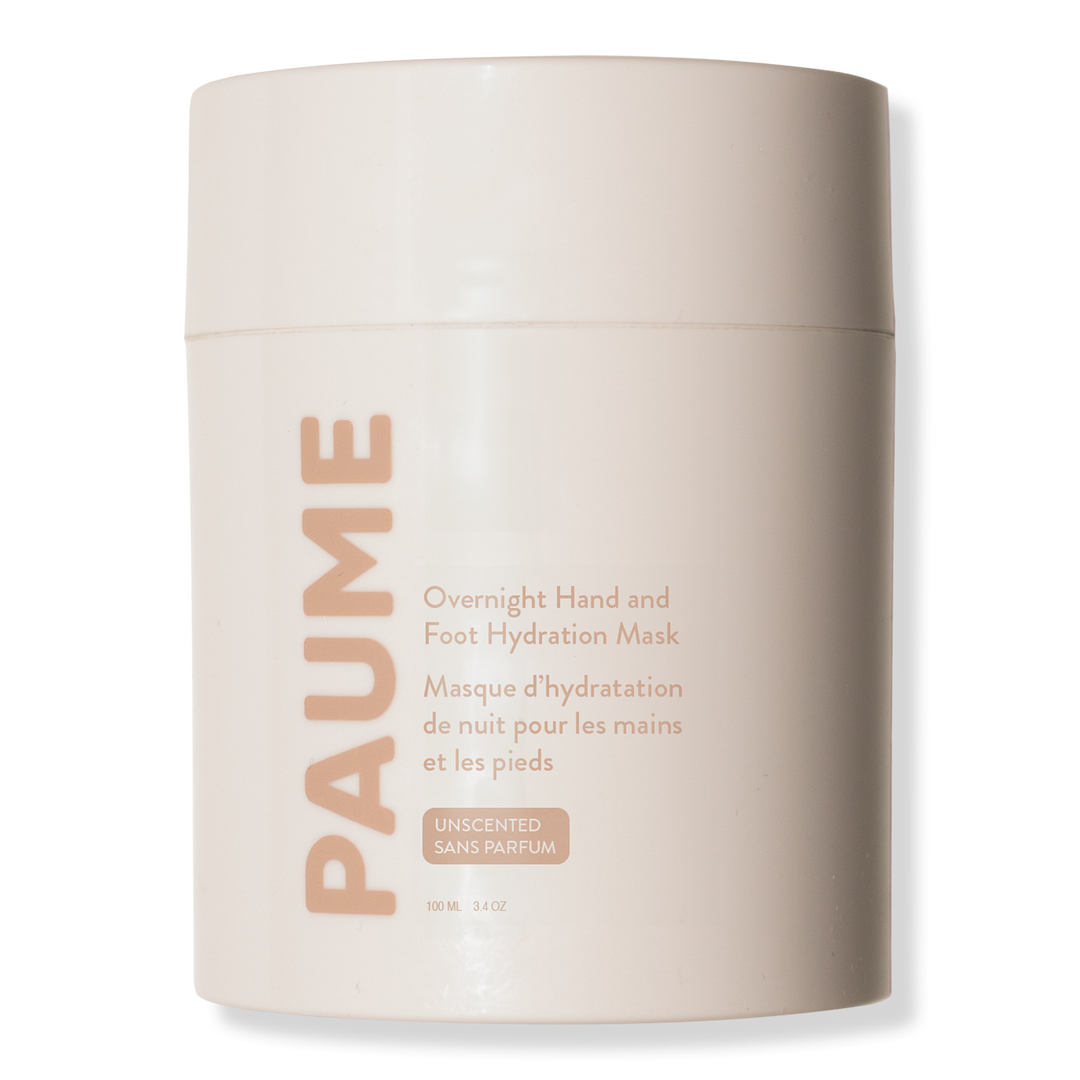 PAUME Overnight Hand and Foot Hydration Mask is a rich treatment with shea butter, glycerin, panthenol, and squalane that locks in moisture and soothes irritation while you sleep, leaving skin soft, smooth, and restored.