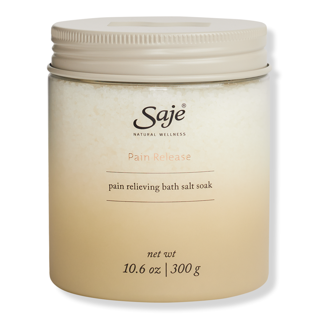 Soak away the soreness with Saje Natural Wellness Pain Release Pain Relieving Bath Salt Soak, a plant-powered blend of essential oils and Epsom Salts that temporarily relieves pain as you bathe.