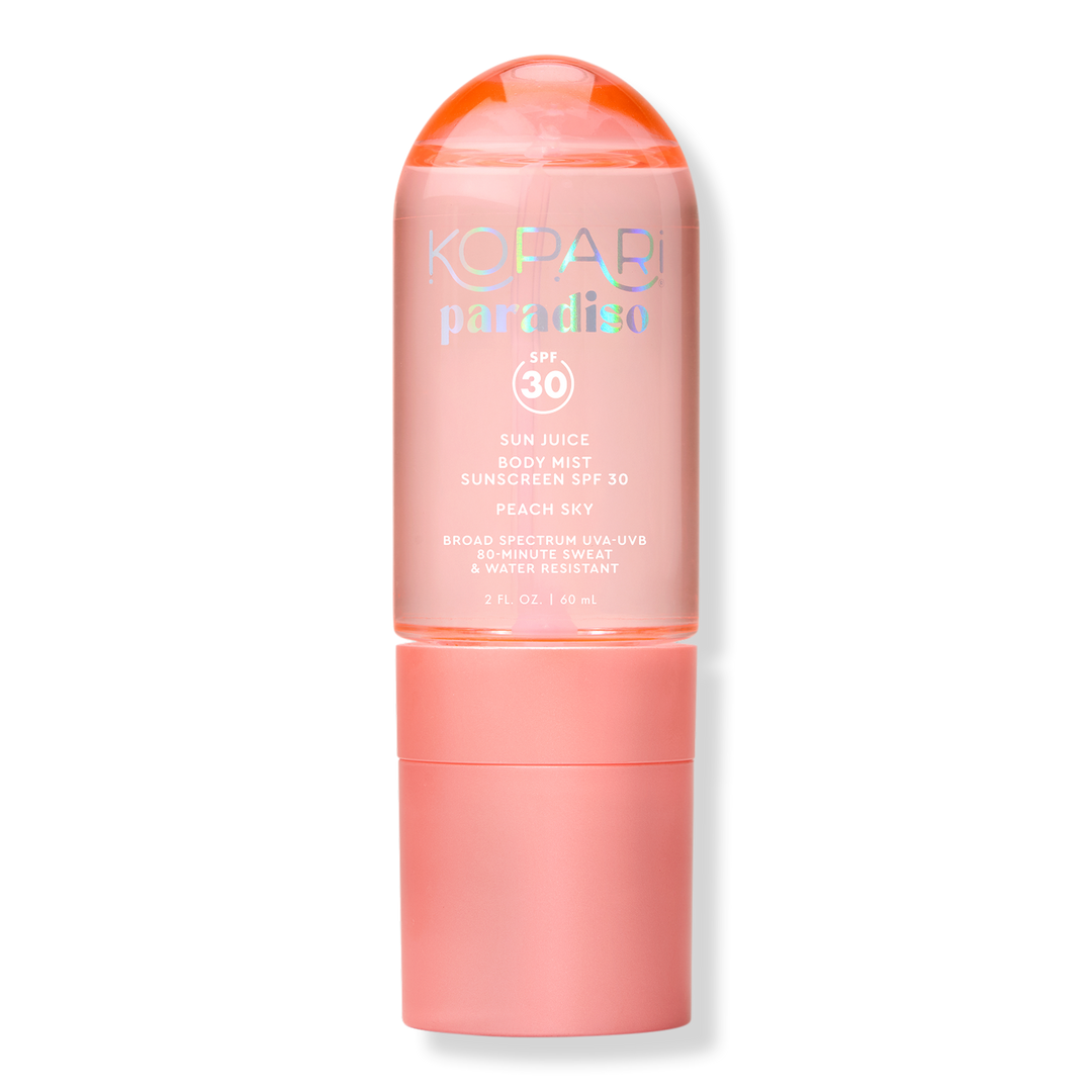 Kopari Paradiso’s Sun Juice Body Mist SPF 30 keeps you glowing, protected, and smelling oh-so-good. This clear, non-sticky mist makes SPF a total breeze - no white cast, just juicy scents, fresh-skin feel, and all-day sun protection wherever you go.