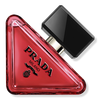 - In a shift from traditional perfume bottle architecture, the flacon is minimal and delicate at first glance, inspired by the original iconic Prada triangle logo disruptively designed to rest on its side.