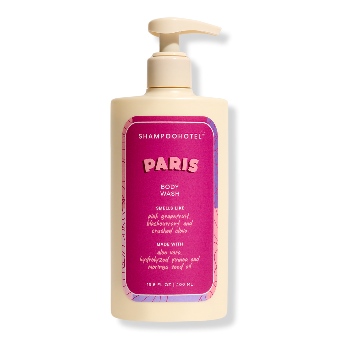 SHAMPOOHOTEL Paris Body Wash offers a chance to indulge in a Parisian getaway. Infused with aloe vera, quinoa and moringa seed oil for skin that feels as luxe as it smells. Fragranced with notes of bright pink grapefruit, juicy blackcurrant, and a hint of clove.