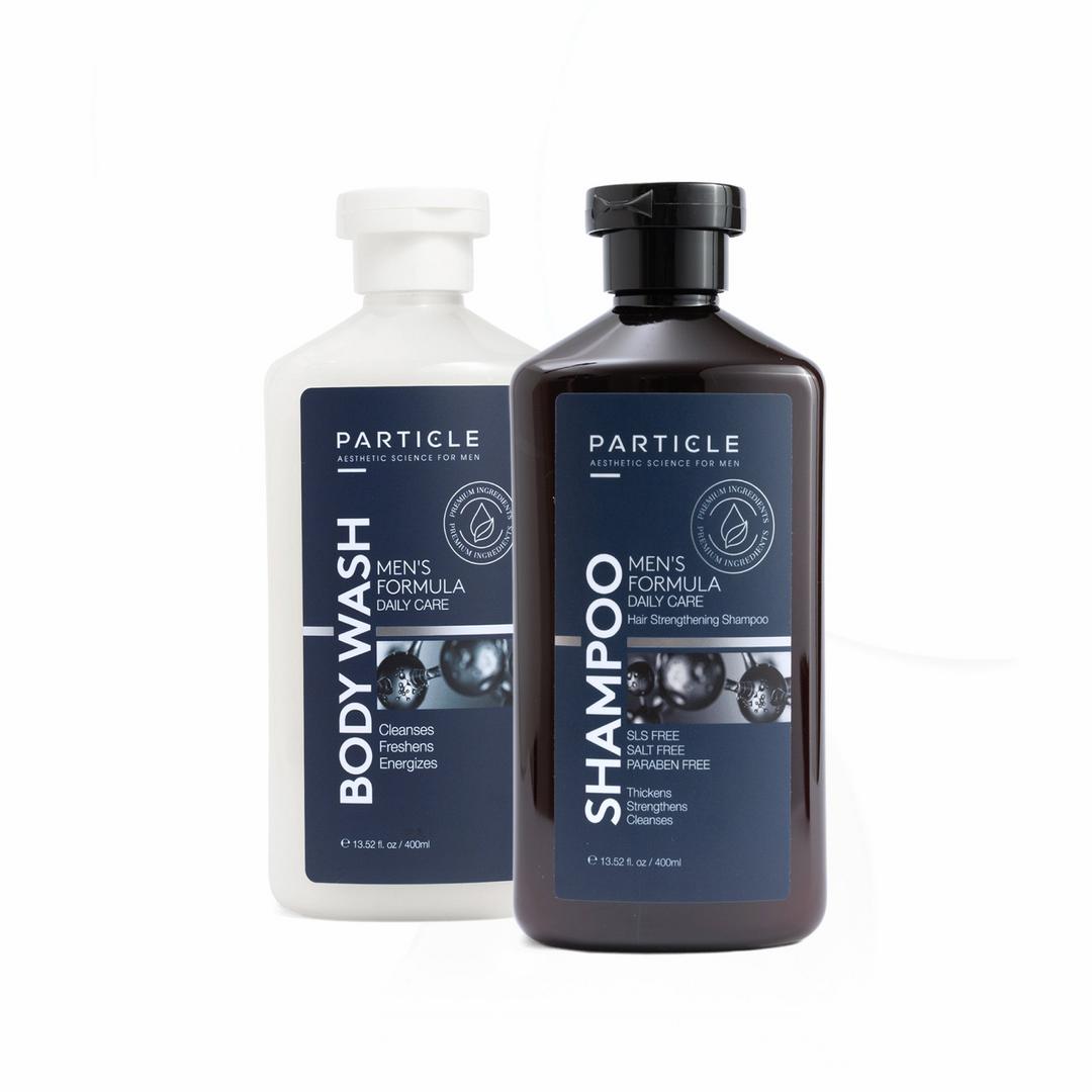 Strengthen your hair and cleanse your body with Particle's shower duo set.