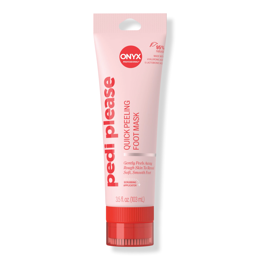 Meet your at-home pedi essential: the ONYX Professional® Pedi Please Quick Peeling Foot Mask, a gel that rolls away dry, dead skin. This K-beauty inspired treatment with Lactobionic and Hyaluronic Acids smoothes and softens feet with an exfoliating gel and built-in scrubber for soft, refreshed feet.