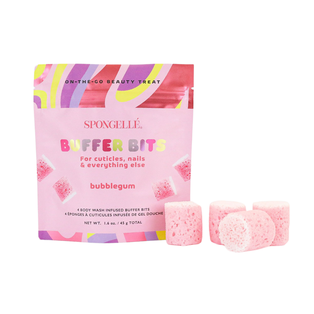 Our Mini Buffer Bits in Cotton Candy are a sweet extension of our PediPOP! Buffers. This dual-sided buffer cleanses & gently exfoliates cuticles, nails, & dry patches. Infused with triple butter & sugarcane extract, it features pomegranate, cherry blossom, and sugar musk for soft, silky-smooth skin.