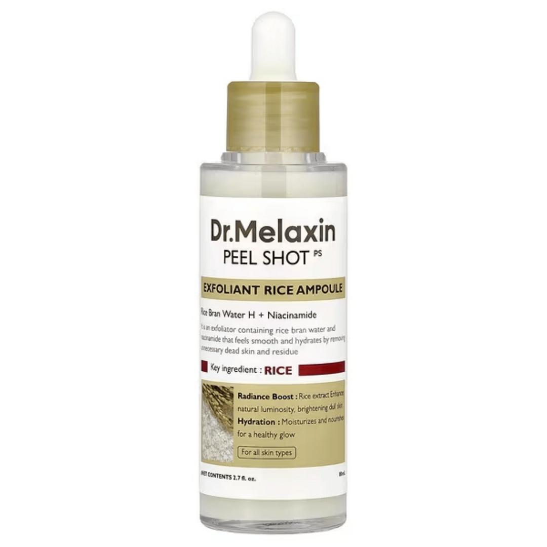 - Dual-Action Exfoliating Ampoule Formula – Dr. Melaxin Peel Shot Exfoliating White Rice Ampoule combines rice bran water with AHA/BHA/PHA and niacinamide to both clear away dead skin and nourish deeper layers for a refined, glowing complexion.