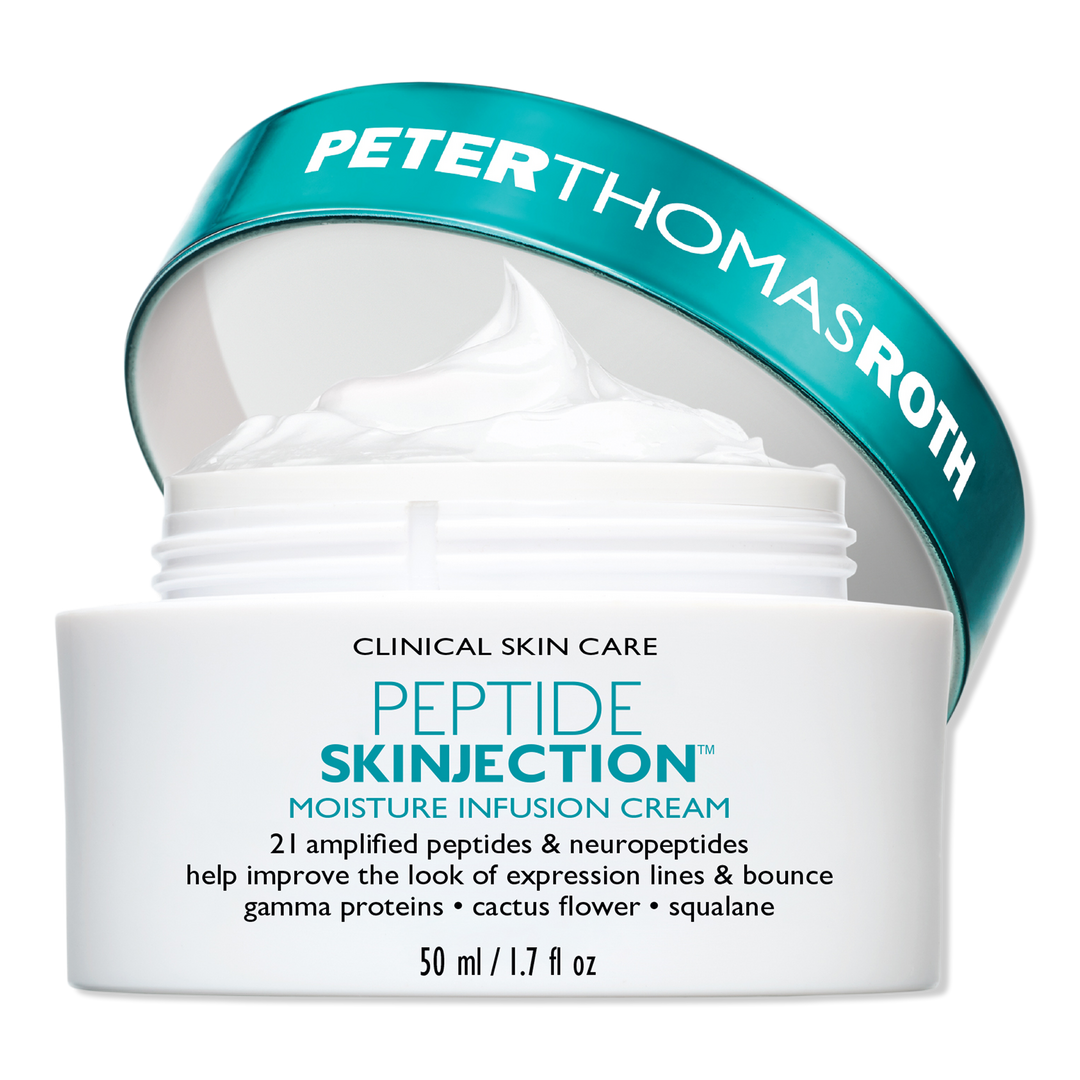The Peter Thomas Roth Peptide Skinjection Moisture Infusion Cream is a peptide-packed, refillable moisturizer that helps to restore the look of youthful bounce, plumping the look of skin with intense hydration.