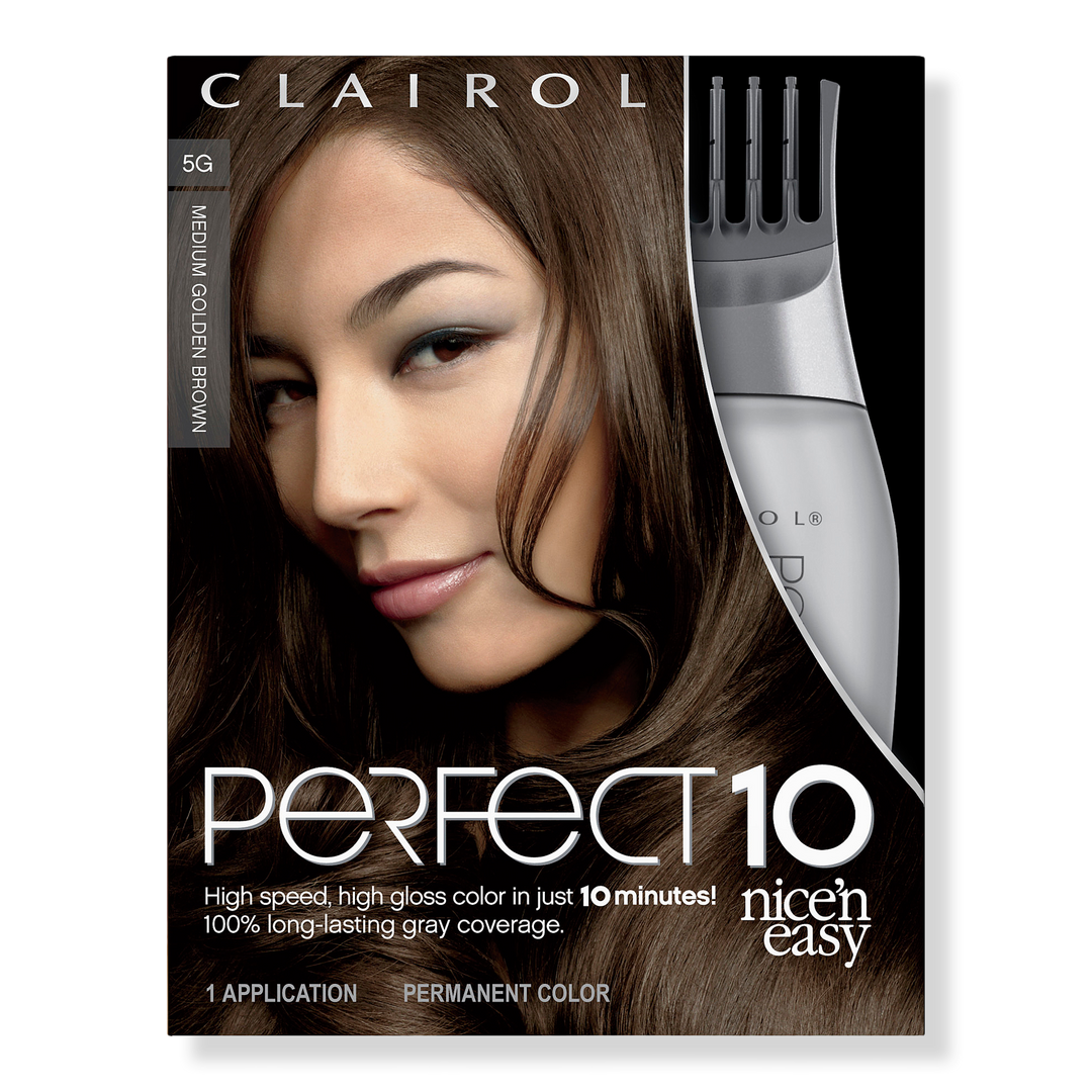Clairol Nice 'N Easy Perfect 10 is a high speed, high gloss permanent hair color that gives your hair shine and reflective dimension in just 10 minutes.