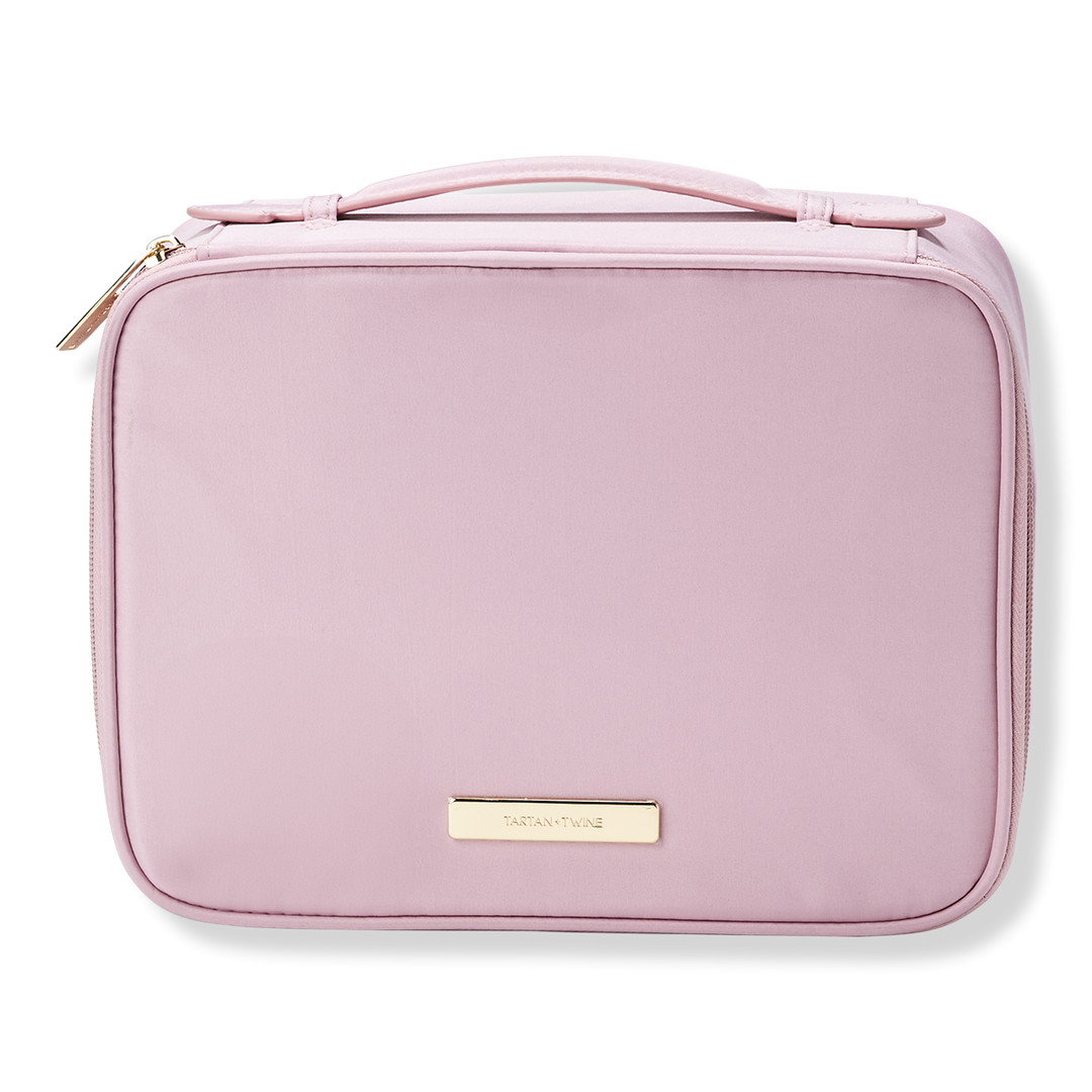 Makeup lovers, get your glow on with the spacious Tartan + Twine® Pink 4-Piece Makeup Organizer that holds brushes, powders, glosses, and more. With 3 removable bags for extra storage.