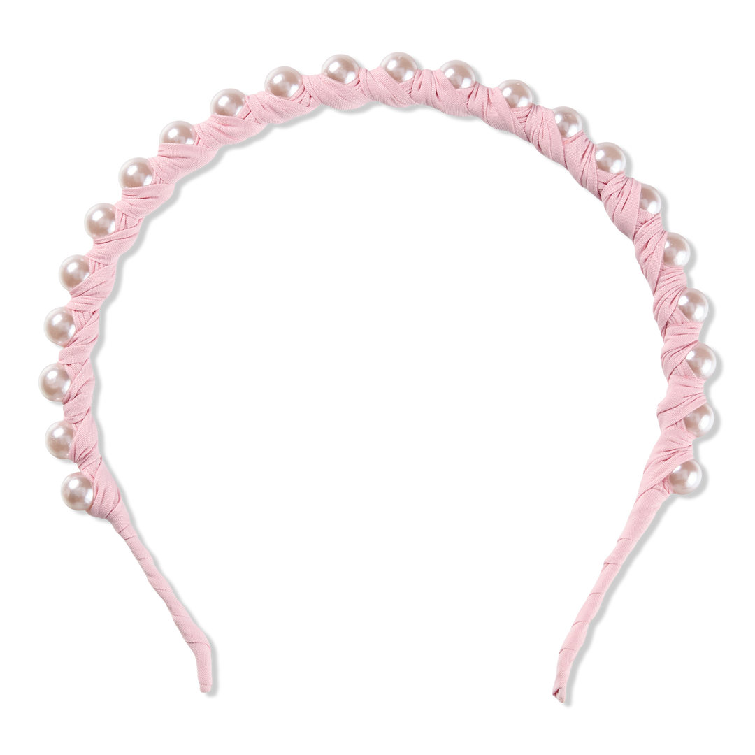 - Baby pink headband finished with pink pearl details