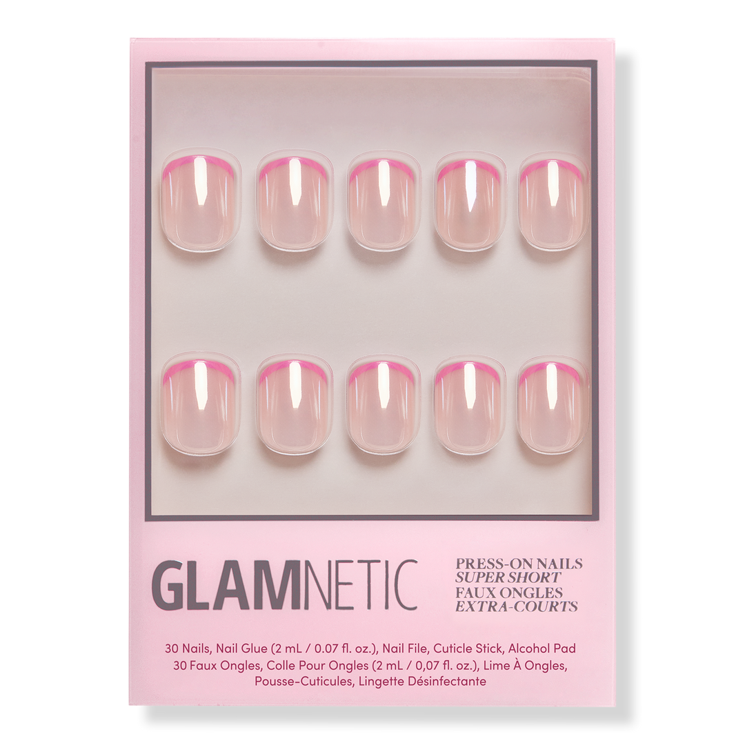 - Align Glamnetic nails with cuticle line and apply at a downward angle. Press down firmly and hold for 10-20 seconds.