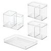- MAKEUP TRAY - Tackle clutter on countertops or inside drawers for good with our iDesign Luci Makeup Organizer Tray. This organizer tray fits neatly inside standard-sized drawers. The clear construction is sleek and keeps contents easily accessible and contained so you can easily find what you’re looking for while keeping contents easy to view and grab. Straight sides slide flush against other organizers so there are no gaps or wasted space. Tray doubles as a guest hand towel tray. Set of 3