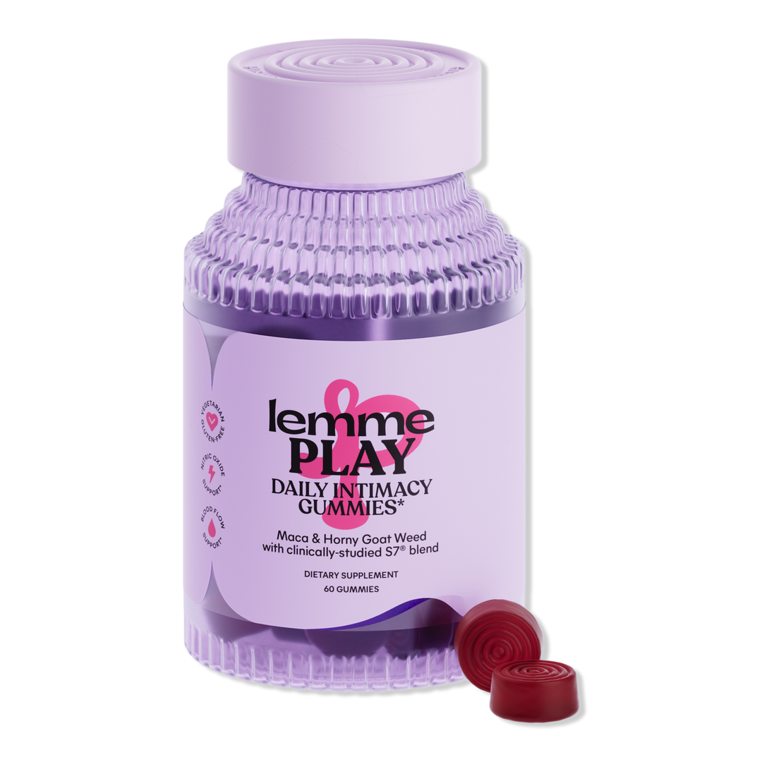 Lemme Play: Daily Intimacy Gummies, clinically-studied S7® complex supports nitric oxide levels and promotes healthy blood flow, while Horny Goat Weed and Maca Root ignite your play.*