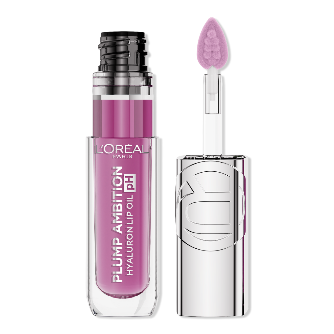 L'Oréal Plump Ambition pH Hyaluron Lip Oil has a color shifting, glass-like shine with a lasting tint of unique pink. 24HR hydration and plumper-looking lips.