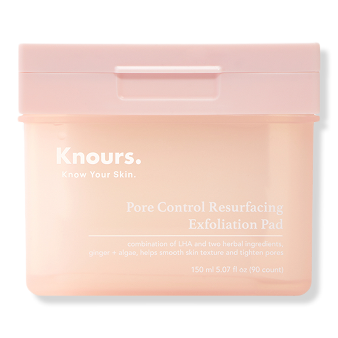 Knours. Pore Control Resurfacing Exfoliation Pad combines LHA with a complex of two herbal extracts, sand ginger and seaweed, to gently exfoliate, help even skin texture, and reduce sebum production for tighter, smoother skin with a clarified complexion. For all skin types, including acne-prone.