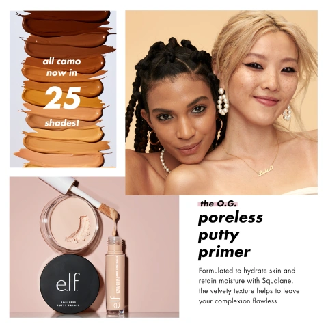 e.l.f. Cosmetics' skin perfecting Poreless Putty Primer is infused with squalene to help grip makeup for all-day wear and help protect skin from moisture loss.