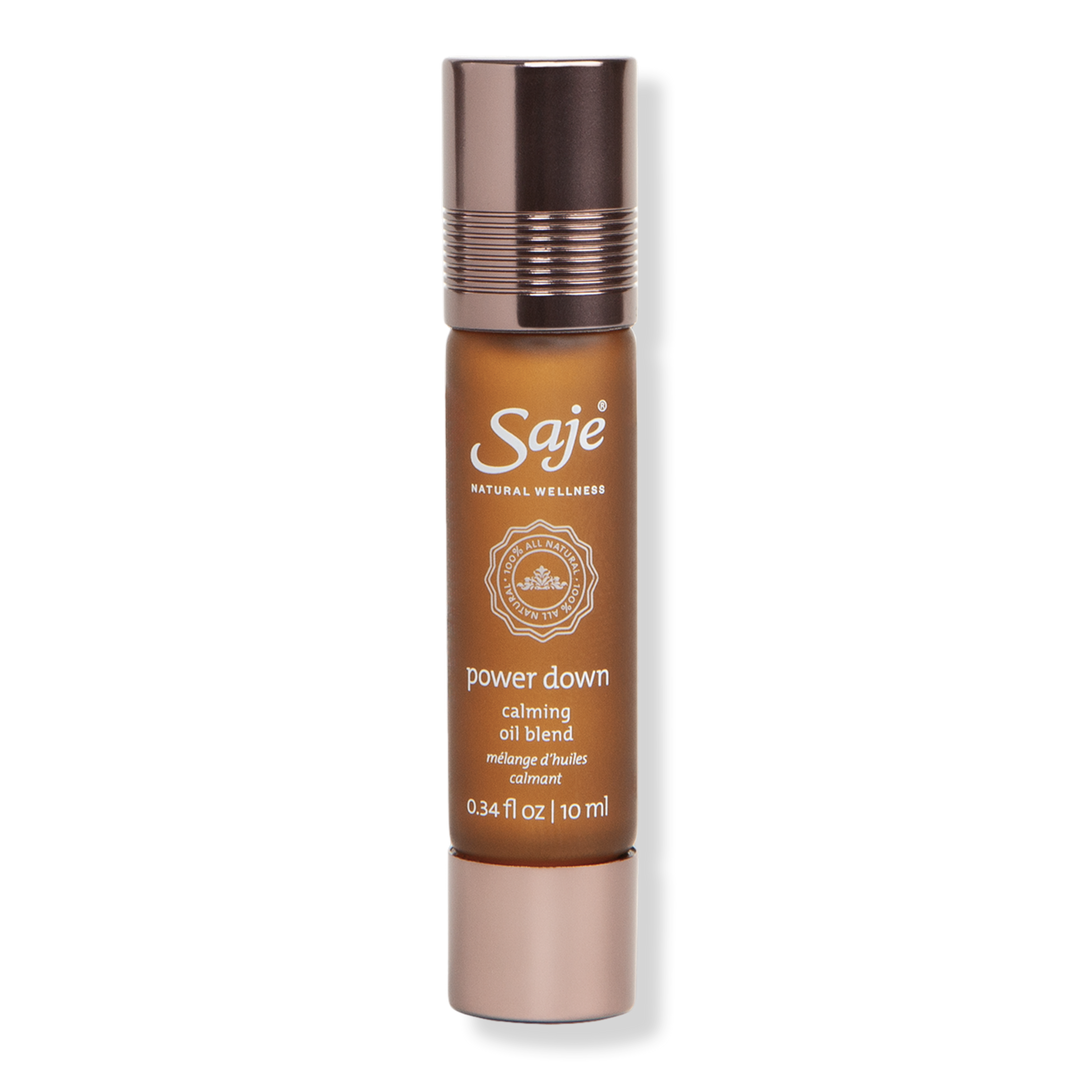 Mind on overdrive? Decompress before bed with Saje Natural Wellness's Power Down Calming Roll-On Oil Blend, an essential oil roll-on to ease feelings of restlessness and help quiet racing thoughts.