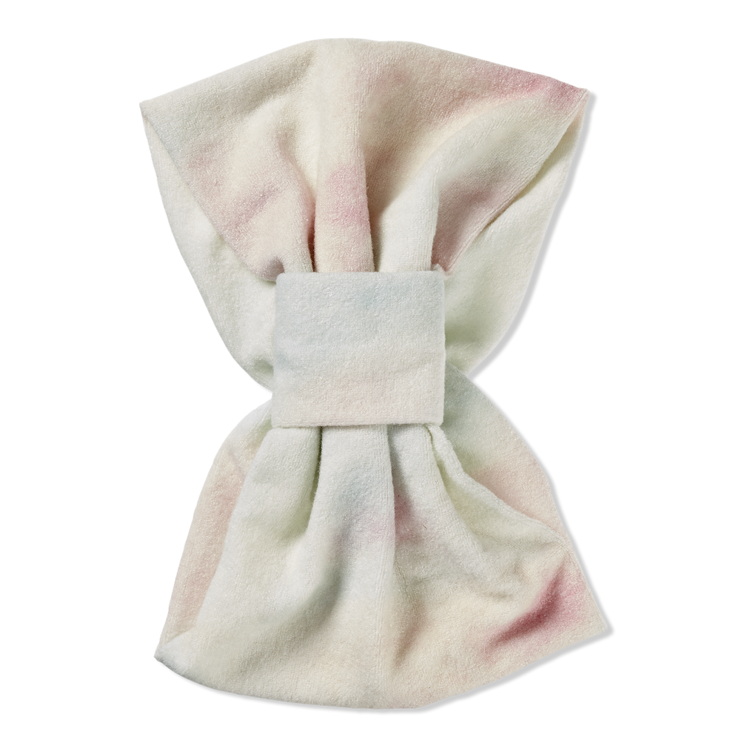 - Terrycloth with a rainbow pastel tie-dye print