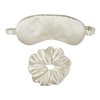 - Matching ivory-colored set with satin sleep mask and pillowy-soft scrunchie
