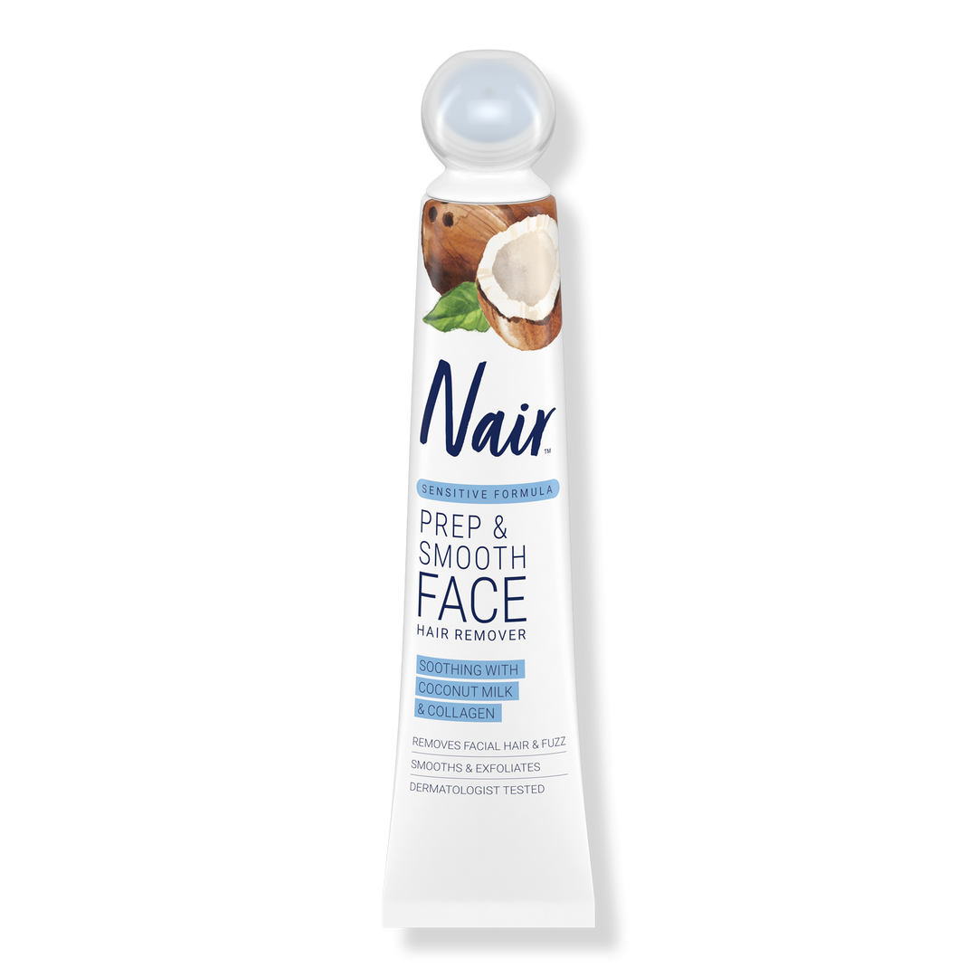 Nair Prep and Smooth Sensitive Facial Hair Remover with Coconut Milk and Collagen is the easy, touch-free, mess-free way to exfoliate your skin and remove your fuzz.