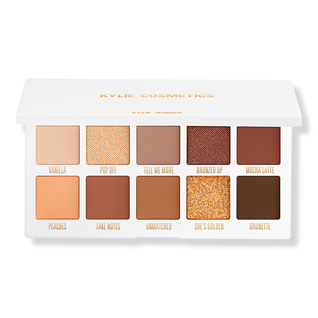 The Kylie Cosmetics Pressed Powder Eyeshadow Palette contains 10 highly pigmented shades. Available in matte, shimmer, and metallic finishes, these velvety smooth, easy-to-blend formulas glide on effortlessly while delivering one-swipe intense color payoff.