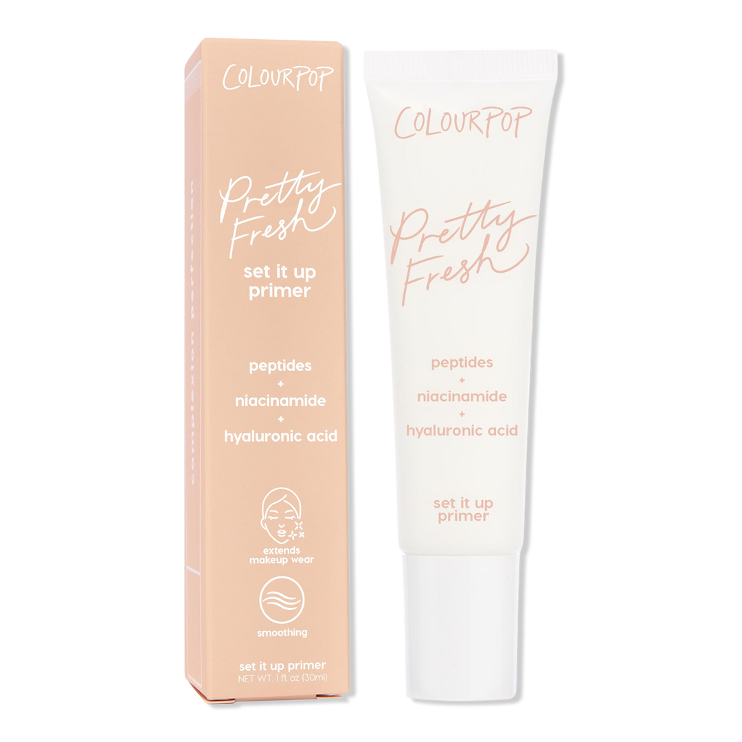 ColourPop's Pretty Fresh Set It Up Primer is a weightless cream-gel primer that extends makeup wear, helps blur pores, instantly hydrates skin and has all-day shine control for an airbrushed finish. Infused with peptides, hyaluronic acid, and niacinamide to boost hydration and nourish skin.