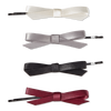 Achieve effortless charm with Scünci PRIMP bobby pins adorned with ribbon bow details. This set includes cream, gray, burgundy, and black bow-topped pins on sturdy black metal bases, ensuring a secure, damage-free hold.