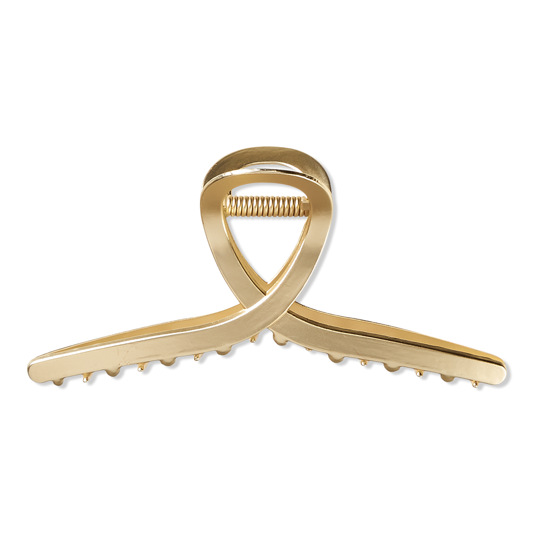 The gold-tone Scünci PRIMP loop claw clip puts a glamorous twist on any style. Perfect for all hair types and the perfect accessory to dress up or down any look. Style and secure a twist or updo for golden glam!