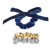 Enjoy the luxurious comfort of this Scünci PRIMP mini scrunchie 3-pack, crafted in gold, silver, and navy blue from silky satin and velvety fabrics. Perfect for lasting wear, whether at work, at school, or on a night out.