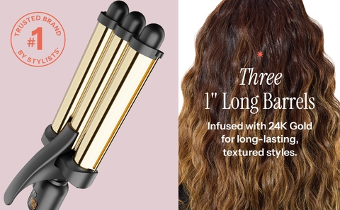 With the Hot Tools 24K Gold Three Barrel Waver, you control the waves. Get smooth, crease-free style in no time.
