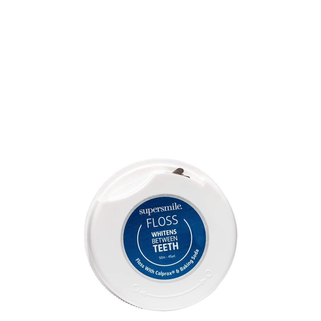 Whiten with every floss. This unique floss helps whiten hard-to-reach areas between teeth while dissolving plaque, bacteria and debris from beneath the gum line. Professional whitening floss is the only floss infused with Calprox®, supersmile’s proprieta.