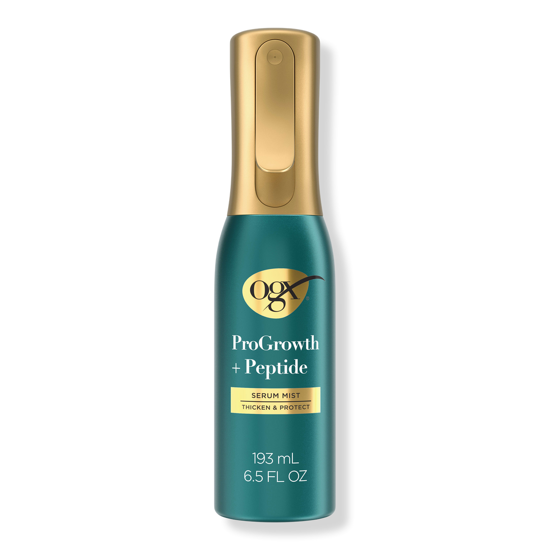 The lightweight OGX ProGrowth + Peptide Serum Mist, Thicken & Protect instantly plumps strands from root to tip while providing heat protection to help prevent hair fall due to breakage.