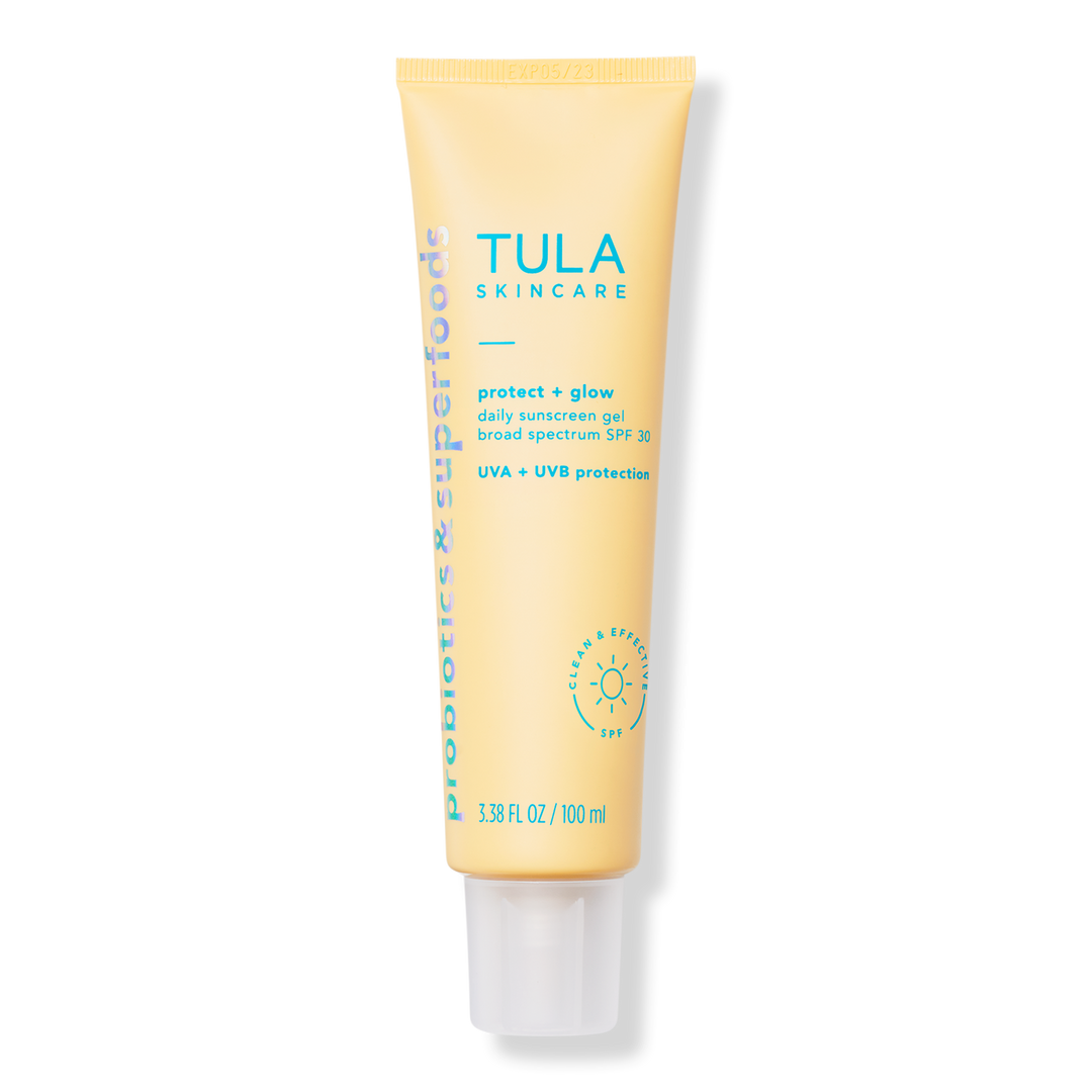 TULA’s Protect + Glow Daily Sunscreen Gel Broad Spectrum SPF 30 provides protection against sun exposure, pollution & blue light while leaving a glow.