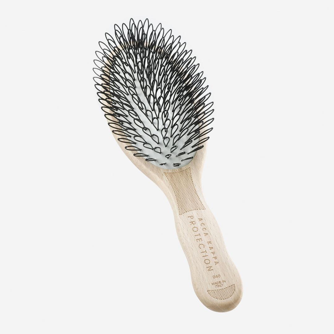 Handcrafted from reforested beechwood, Acca Kappa’s Protection Brush features looped nylon bristles that gently detangle while stimulating microcirculation. Its cushioned design evenly distributes pressure, protecting delicate or fine hair with signature Italian quality.