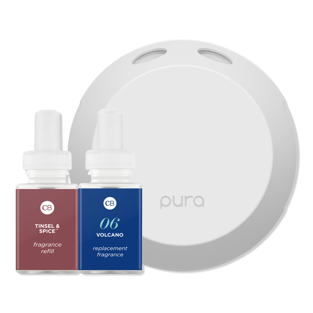 Pura x Capri Blue Tinsel & Spice and Volcano Seasonal Diffuser Set. Through an innovative and user-friendly app, Pura lets you set schedules, adjust fragrance intensity, and more all from your phone. Wi-Fi required.