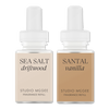 Pura X Studio McGee Santal Vanilla and Sea Salt Driftwood. Santal Vanilla brings a calming and cozy feel to a room with notes of vanilla, sandalwood, and amber. Sea Salt Driftwood animates your open spaces with notes of bergamot, ocean air, and sea salt.